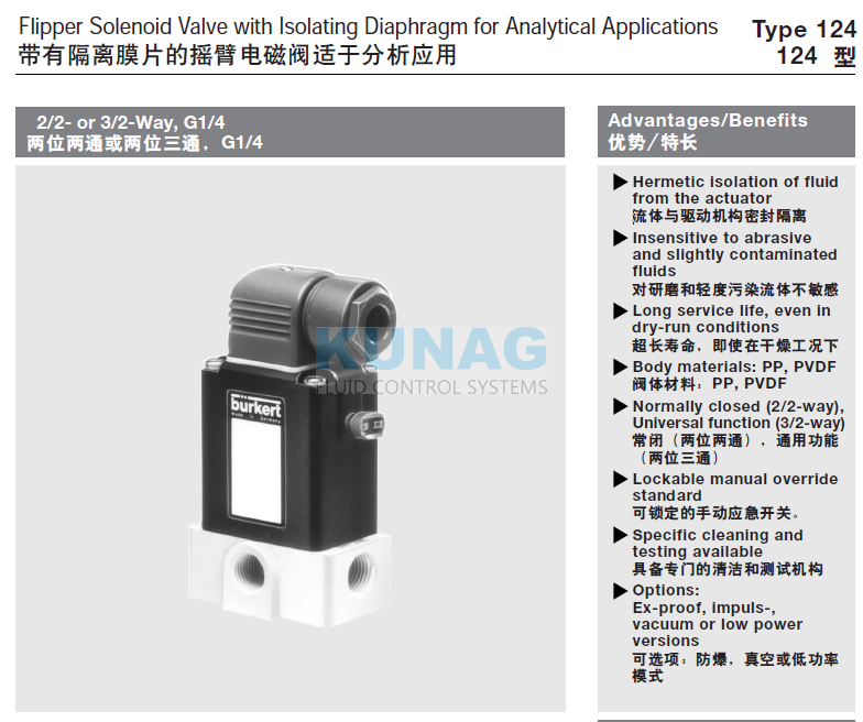 00457204 氟橡膠FKM電磁閥 口徑4mm 介質(zhì)隔離式 burkert