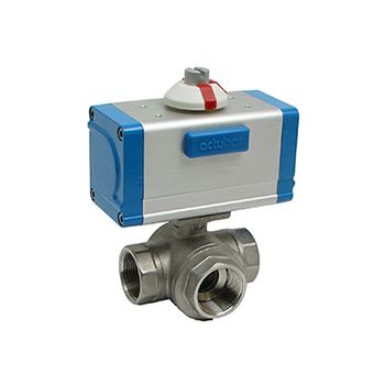 球閥 3/2-way ball valve of stainless steel automated by pneumatic actuator "actubar"