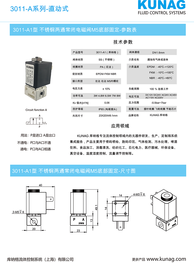 樣本資料:3011-A1型 不銹鋼兩通常閉電磁閥M5