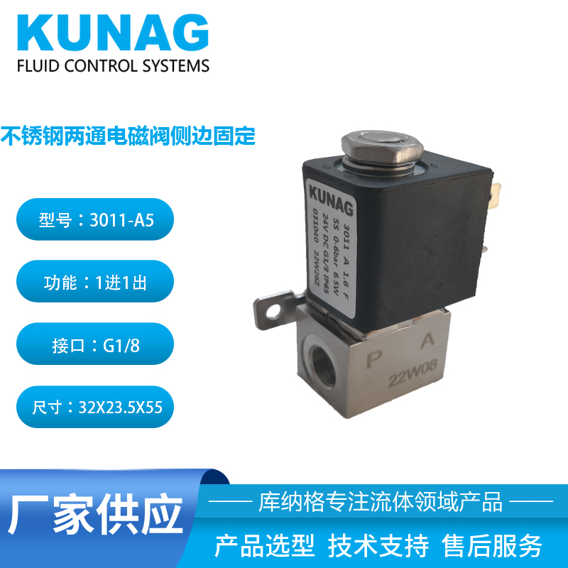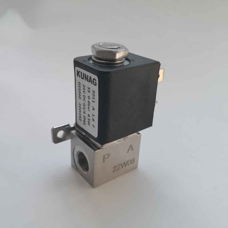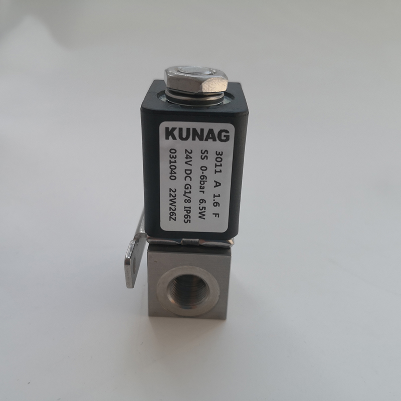 3011-A5型為直動(dòng)式柱塞電磁閥。止動(dòng)器與柱塞導(dǎo)管焊接在一起,以提高耐壓性和密封性,根據(jù)不同的應(yīng)用,可以選擇各種密封材質(zhì)。公司專用底板接口使該閥可組合安裝在底板上,節(jié)省空間,可選插管接頭式連接軟管,電磁線圈采用聚酰胺封裝,該閥的安全防護(hù)等級(jí)為 IP65。