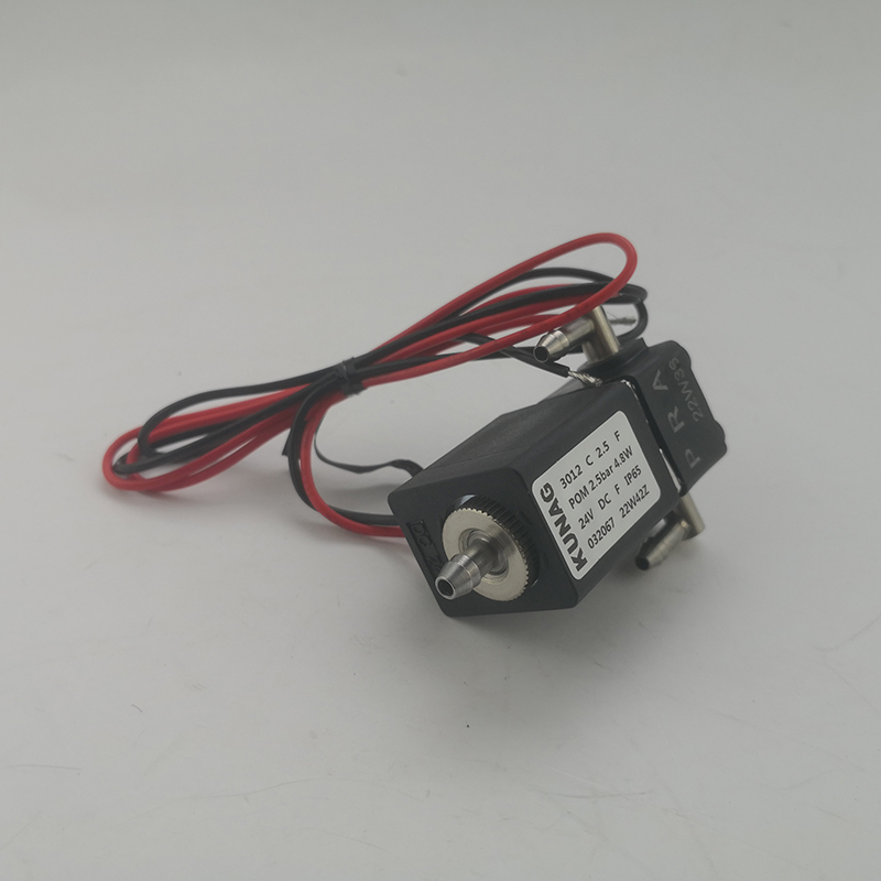 3012-B8型為直動式柱塞三通電磁閥。止動器與柱塞導管焊接在一起,以提高耐壓性和密封性,根據(jù)不同的應用,可以選擇各種密封材質。公司專用底板接口使該閥可組合安裝在底板上,節(jié)省空間,可選插管接頭式連接軟管,電磁線圈采用聚酰胺封裝,該閥的安全防護等級為 IP65。