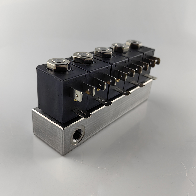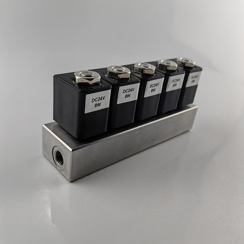 插針 飛線線圈,微型閥組兩通電磁閥切換1進5出 5進1出,集成閥到多進多出,不銹鋼閥體。
